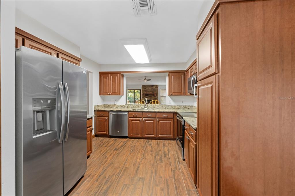 Ceiling Fan(s), Eating Space In Kitchen, High Ceilings, Living Room/Dining Room Combo, Split Bedroom, Stone Counters, Thermostat