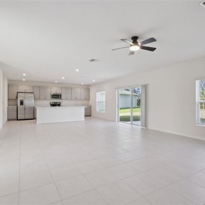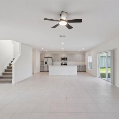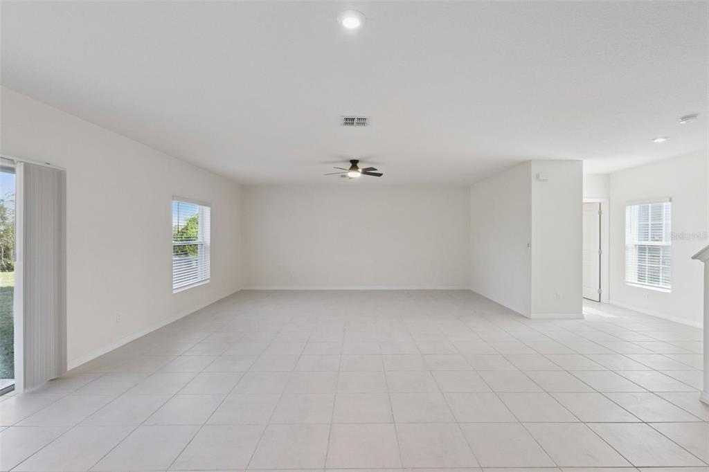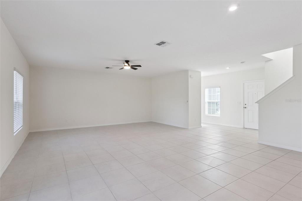Ceiling Fan(s), Eating Space In Kitchen, Kitchen/Family Room Combo, Living Room/Dining Room Combo, Open Floorplan, Thermostat, Window Treatments