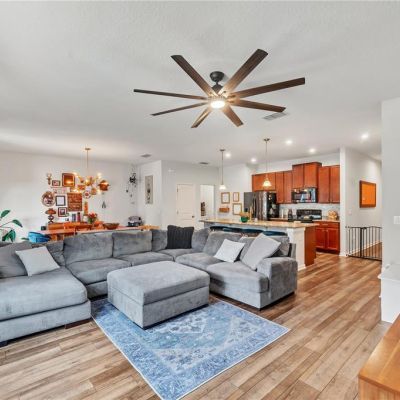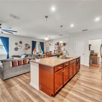 Ceiling Fan(s), Eating Space In Kitchen, Kitchen/Family Room Combo, Open Floorplan, PrimaryBedroom Upstairs, Stone Counters, Walk-In Closet(s), Window Treatments
