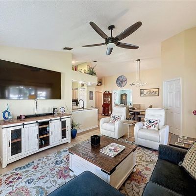 Cathedral Ceiling(s), Ceiling Fan(s), Eating Space In Kitchen, Kitchen/Family Room Combo, Open Floorplan, Primary Bedroom Main Floor, Solid Wood Cabinets, Stone Counters, Thermostat, Walk-In Closet(s), Window Treatments