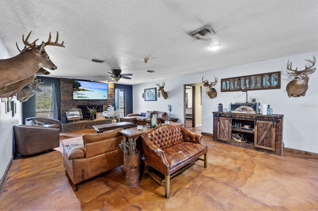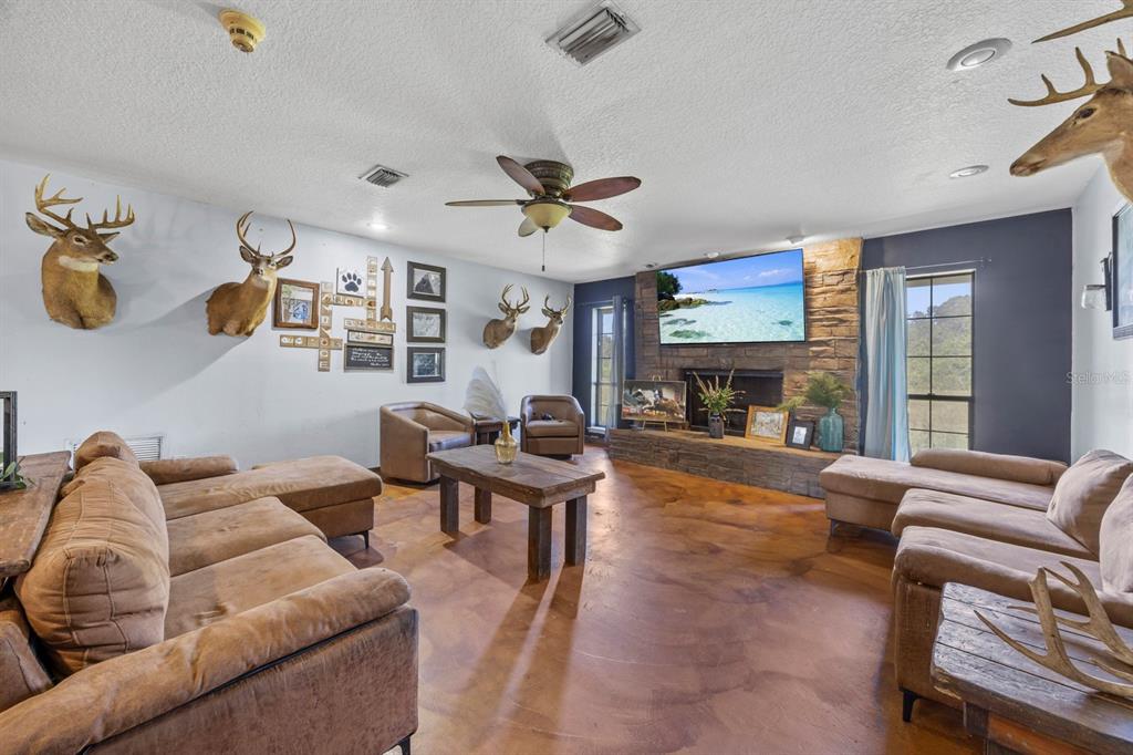 Ceiling Fan(s), Eating Space In Kitchen, Open Floorplan, Primary Bedroom Main Floor, Solid Surface Counters, Solid Wood Cabinets, Stone Counters, Thermostat, Walk-In Closet(s)