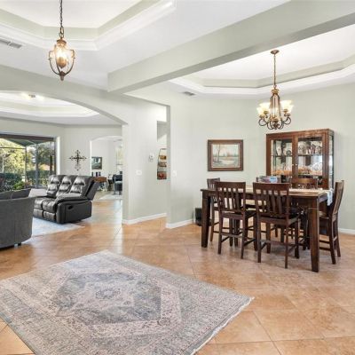 Crown Molding, Eating Space In Kitchen, High Ceilings, Primary Bedroom Main Floor, Solid Surface Counters, Solid Wood Cabinets, Thermostat, Tray Ceiling(s), Walk-In Closet(s), Window Treatments