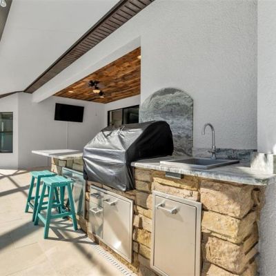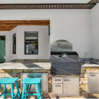 Irrigation System, Lighting, Outdoor Grill, Outdoor Kitchen, Private Mailbox, Rain Gutters, Sidewalk, Sliding Doors