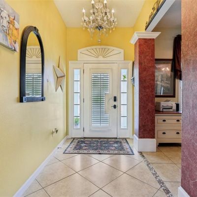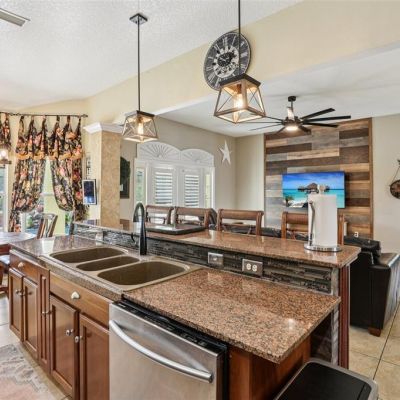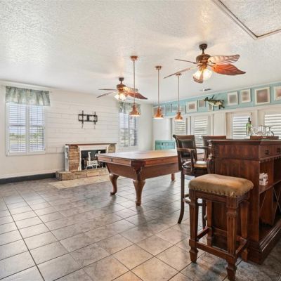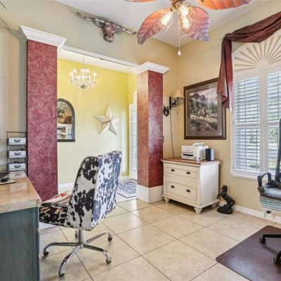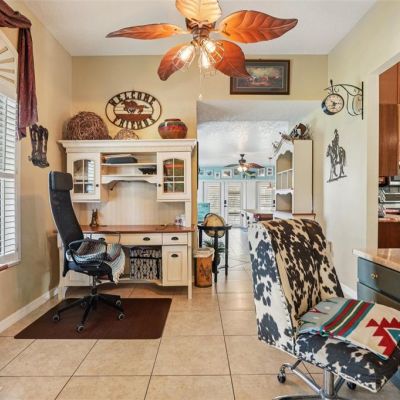 Dry Bar, High Ceilings, Kitchen/Family Room Combo, Pest Guard System, Split Bedroom, Stone Counters, Thermostat, Walk-In Closet(s), Window Treatments, Ceiling Fan(s)