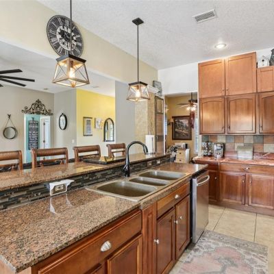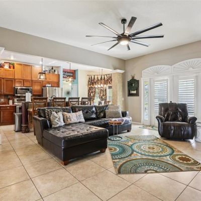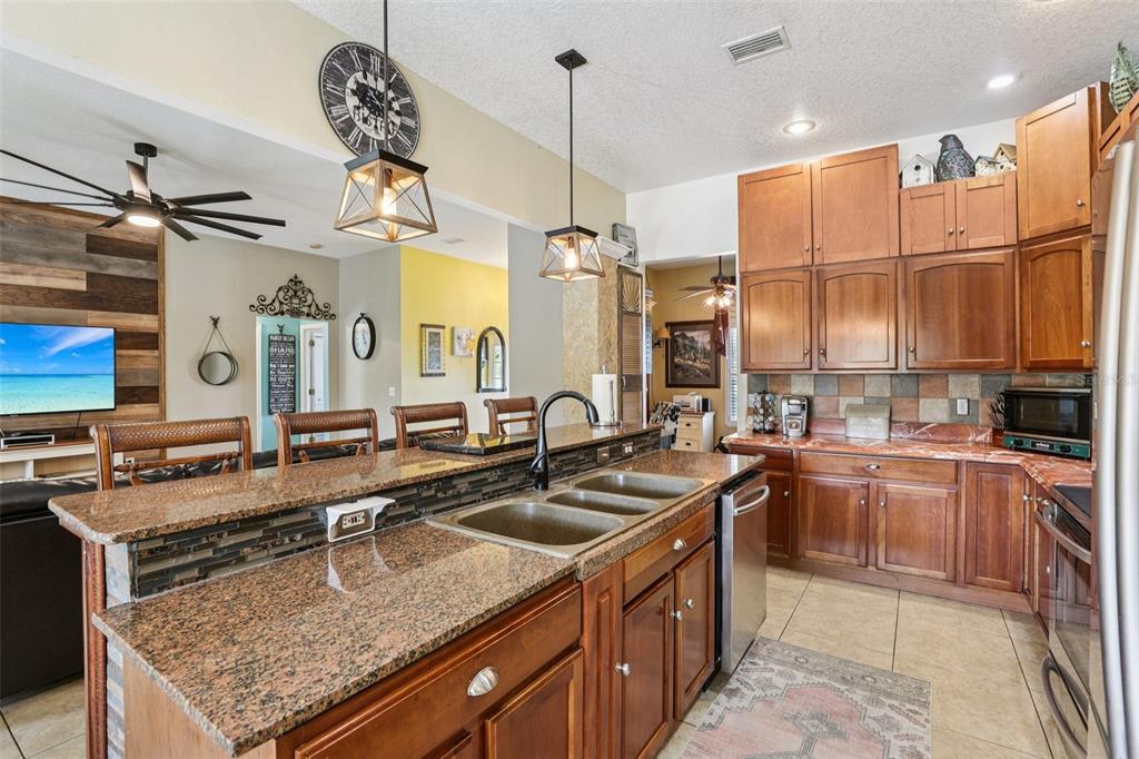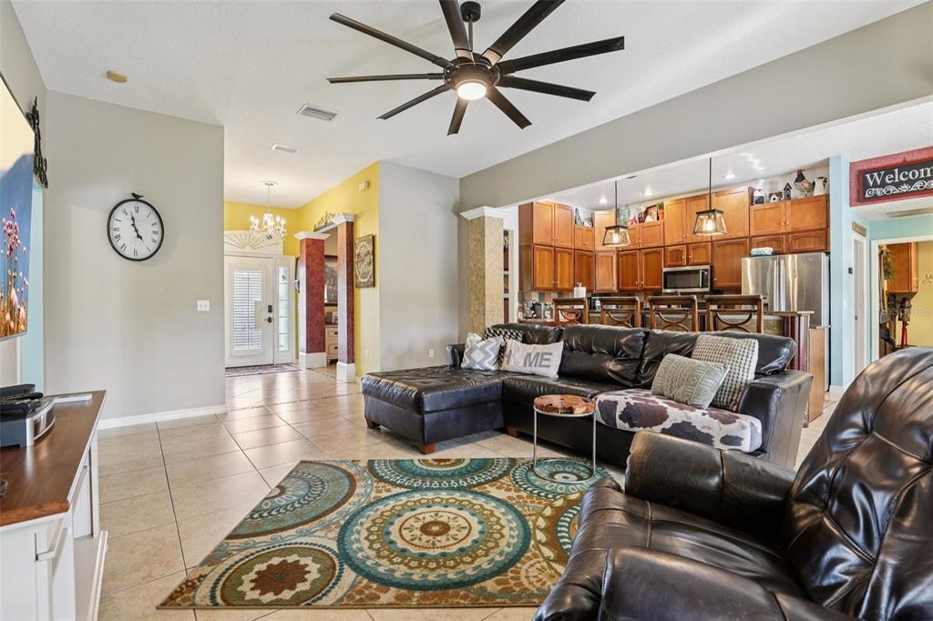 Ceiling Fan(s), Dry Bar, High Ceilings, Kitchen/Family Room Combo, Pest Guard System, Split Bedroom, Stone Counters, Thermostat, Walk-In Closet(s), Window Treatments