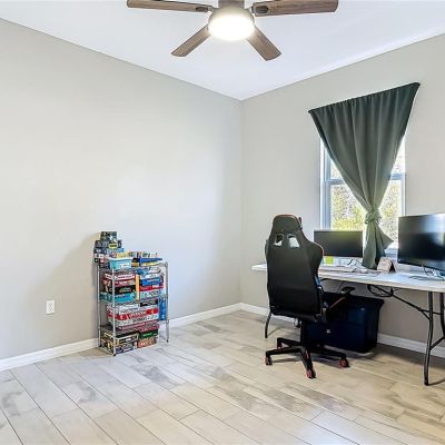 Ceiling Fan(s), High Ceilings, Kitchen/Family Room Combo, Open Floorplan, Primary Bedroom Main Floor, Solid Surface Counters, Solid Wood Cabinets, Split Bedroom, Thermostat, Tray Ceiling(s)