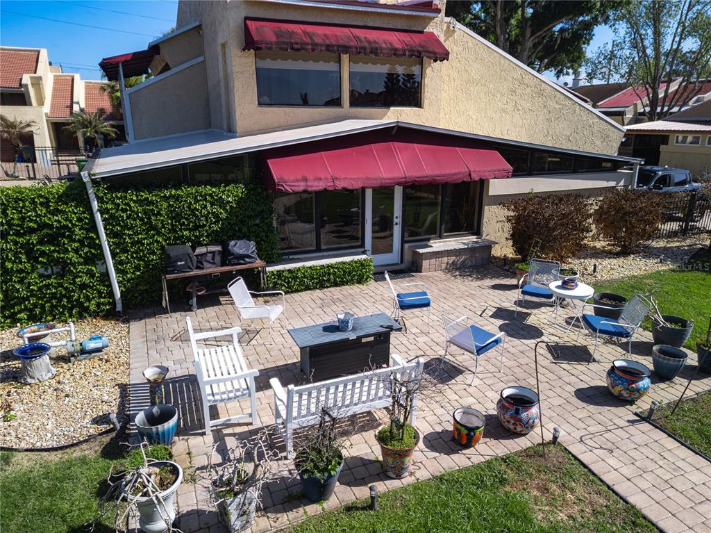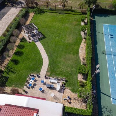 Awning(s), Balcony, French Doors, Irrigation System, Outdoor Grill, Private Yard, Storage, Tennis Court(s)