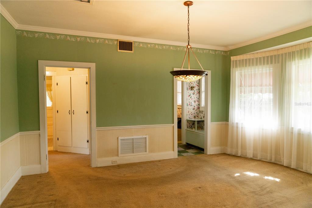 Ceiling Fan(s), Eating Space In Kitchen, Thermostat, Window Treatments
