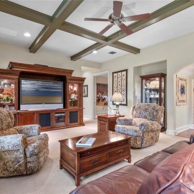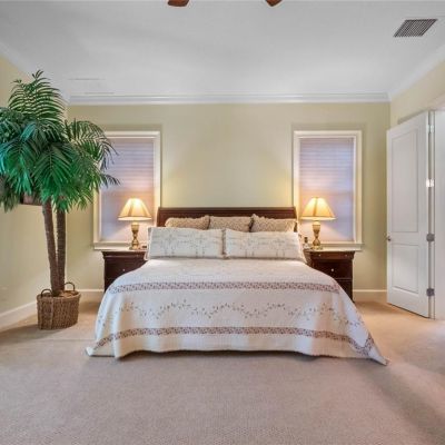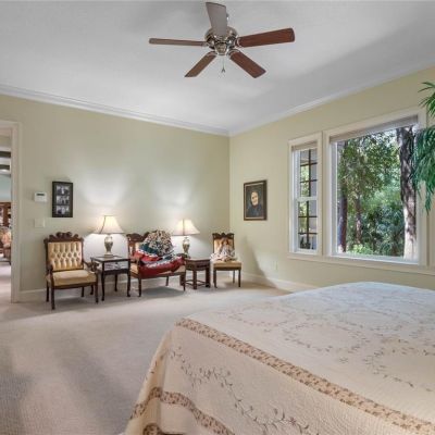 Ceiling Fan(s), Crown Molding, High Ceilings, Primary Bedroom Main Floor, Solid Surface Counters, Solid Wood Cabinets, Stone Counters, Walk-In Closet(s)