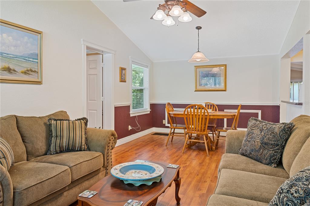 Cathedral Ceiling(s), Ceiling Fan(s), High Ceilings, Kitchen/Family Room Combo, Living Room/Dining Room Combo, Open Floorplan, Primary Bedroom Main Floor, Solid Wood Cabinets, Split Bedroom, Thermostat