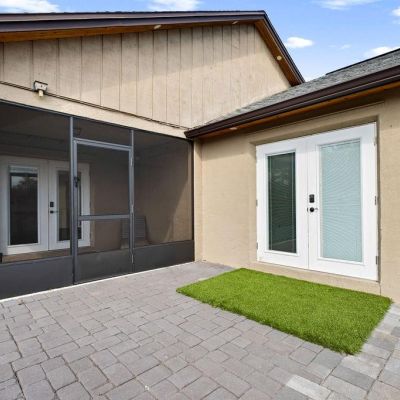 French Doors, Hurricane Shutters, Lighting, Rain Gutters, Sidewalk, Sliding Doors