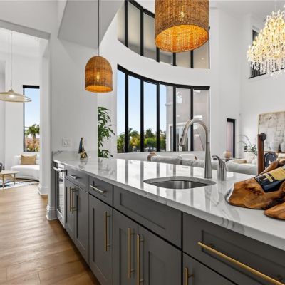 Cathedral Ceiling(s), Ceiling Fan(s), Crown Molding, Eating Space In Kitchen, High Ceilings, Kitchen/Family Room Combo, Primary Bedroom Main Floor, Split Bedroom, Stone Counters, Tray Ceiling(s), Vaulted Ceiling(s), Walk-In Closet(s), Wet Bar