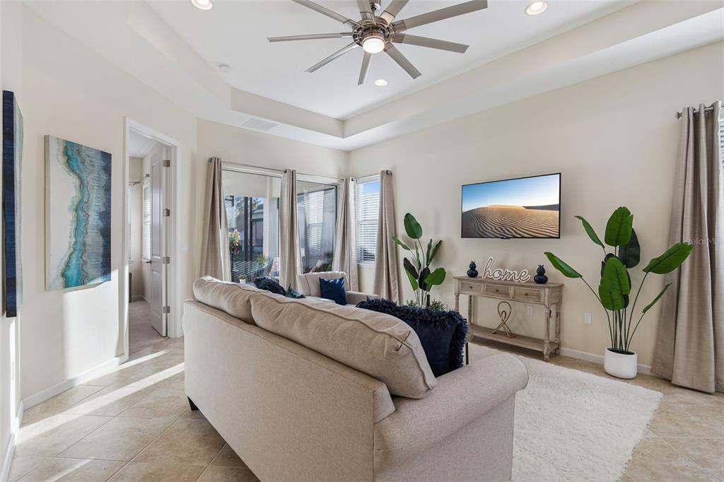 Ceiling Fan(s), Eating Space In Kitchen, Open Floorplan, Primary Bedroom Main Floor, Solid Wood Cabinets, Stone Counters, Thermostat, Tray Ceiling(s), Walk-In Closet(s), Window Treatments