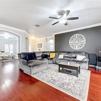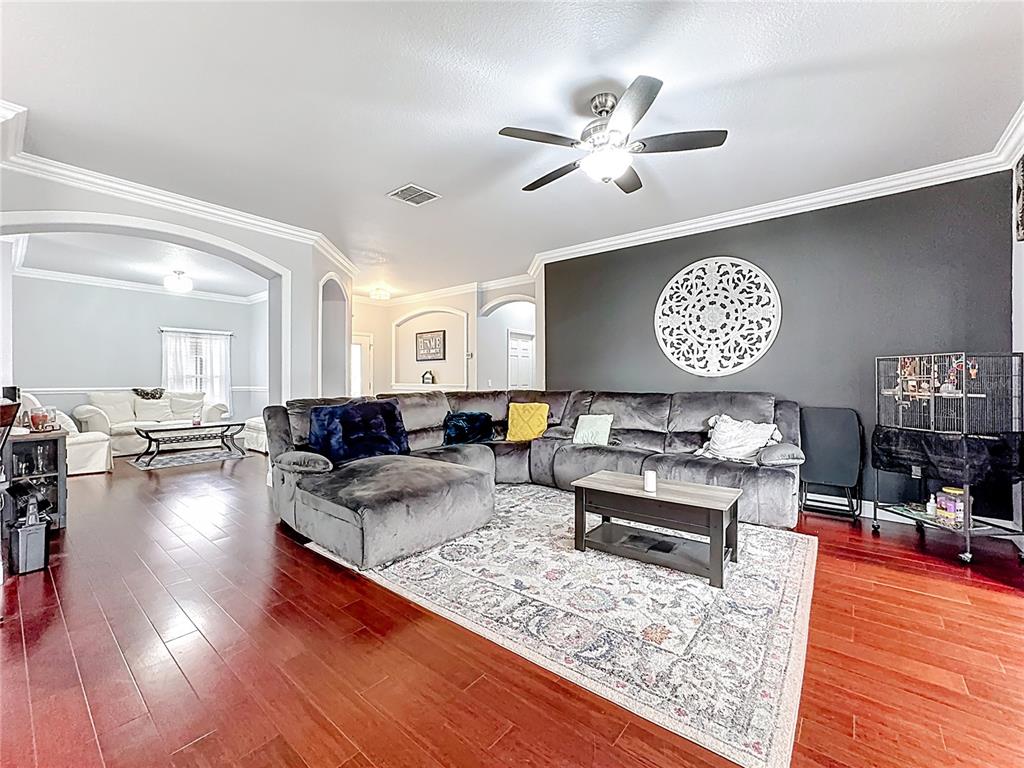 Ceiling Fan(s), Crown Molding, Kitchen/Family Room Combo, Living Room/Dining Room Combo, Open Floorplan, Solid Surface Counters, Stone Counters, Walk-In Closet(s)