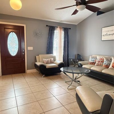 Ceiling Fan(s), High Ceilings, Kitchen/Family Room Combo, Living Room/Dining Room Combo, Thermostat, Walk-In Closet(s)