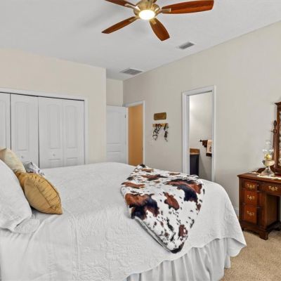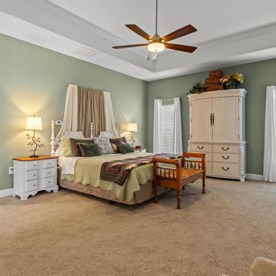 Ceiling Fan(s), Eating Space In Kitchen, High Ceilings, Kitchen/Family Room Combo, Open Floorplan, Primary Bedroom Main Floor, Stone Counters, Thermostat, Tray Ceiling(s), Walk-In Closet(s), Window Treatments