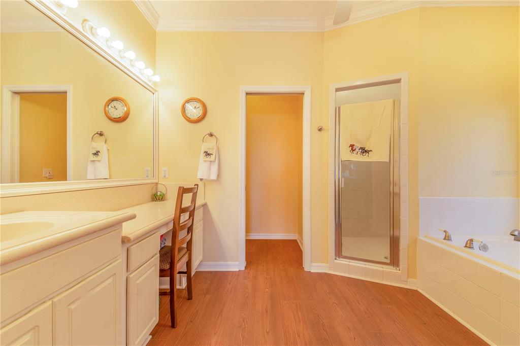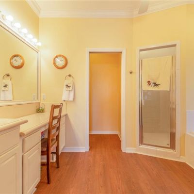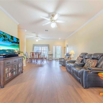 Ceiling Fan(s), Crown Molding, Eating Space In Kitchen, Living Room/Dining Room Combo, Solid Surface Counters, Solid Wood Cabinets, Walk-In Closet(s)
