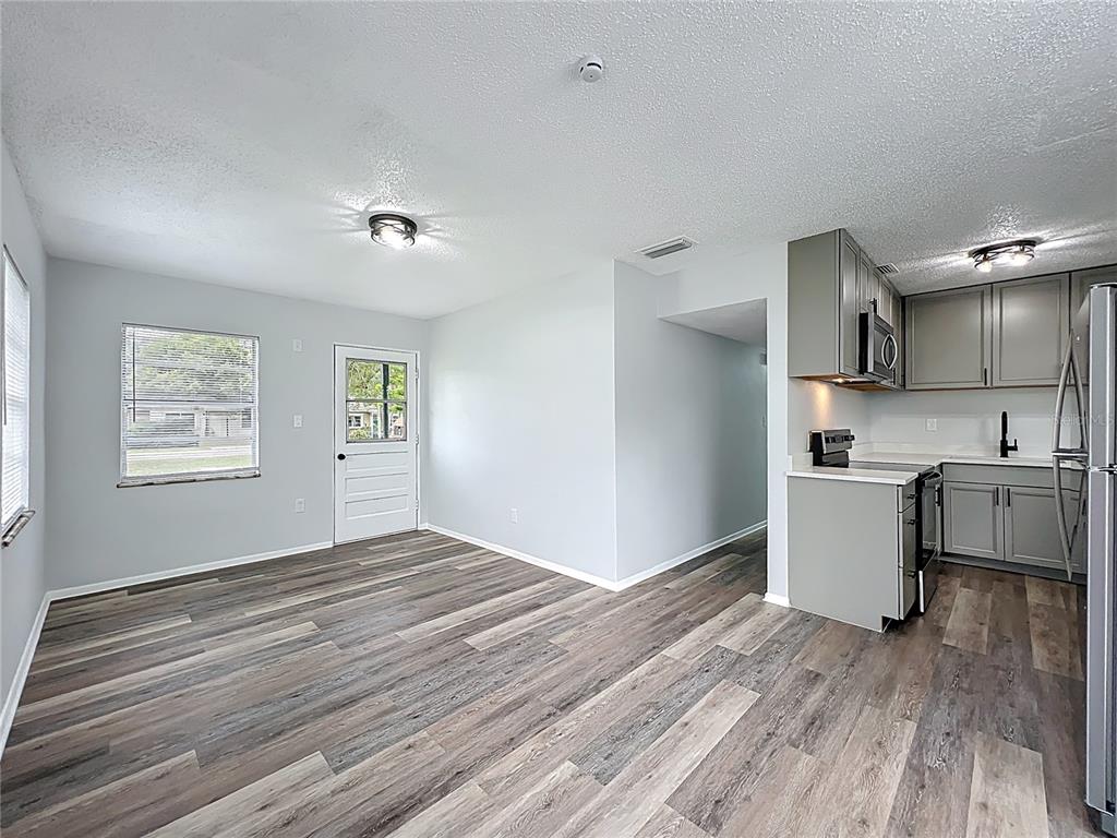 Living Room/Dining Room Combo, Solid Surface Counters, Solid Wood Cabinets, Thermostat, Window Treatments