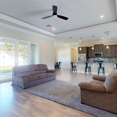 Crown Molding, Eating Space In Kitchen, High Ceilings, Kitchen/Family Room Combo, Open Floorplan, Solid Surface Counters, Walk-In Closet(s)