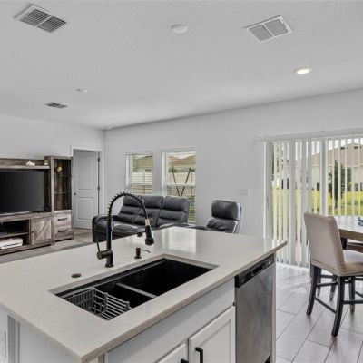 High Ceilings, Kitchen/Family Room Combo, Living Room/Dining Room Combo, Open Floorplan, Solid Surface Counters