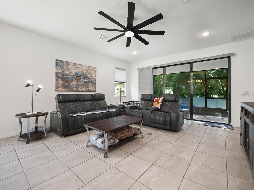 Ceiling Fan(s), High Ceilings, Kitchen/Family Room Combo, Open Floorplan, Pest Guard System, Primary Bedroom Main Floor, Solid Surface Counters, Split Bedroom, Thermostat, Vaulted Ceiling(s), Walk-In Closet(s)