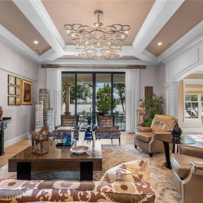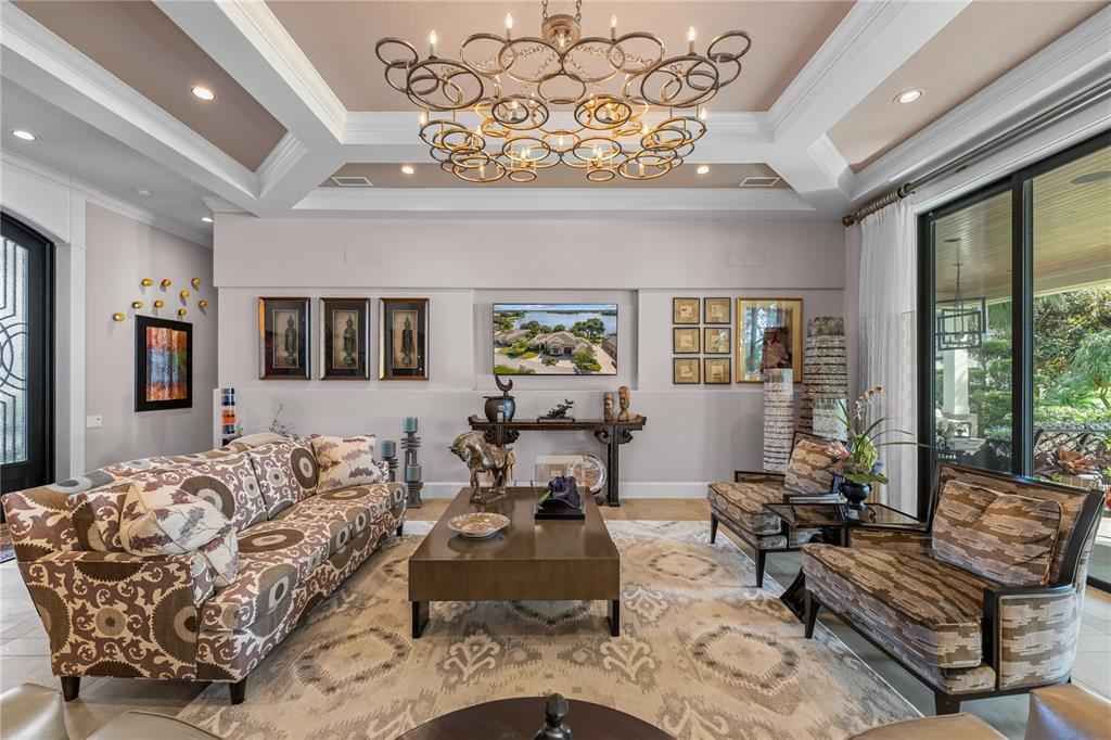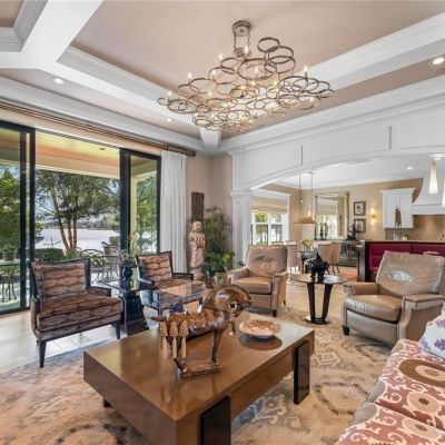 Built-in Features, Ceiling Fan(s), Coffered Ceiling(s), Crown Molding, Eating Space In Kitchen, Elevator, High Ceilings, Kitchen/Family Room Combo, Living Room/Dining Room Combo, Open Floorplan, Other, Primary Bedroom Main Floor, PrimaryBedroom Upstairs, Smart Home, Stone Counters, Thermostat, Walk-In Closet(s), Window Treatments