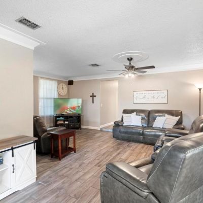 Ceiling Fan(s), Crown Molding, Eating Space In Kitchen, Primary Bedroom Main Floor, Solid Surface Counters, Solid Wood Cabinets, Thermostat, Walk-In Closet(s)