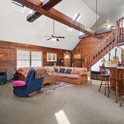 Ceiling Fan(s), High Ceilings, Kitchen/Family Room Combo, PrimaryBedroom Upstairs, Skylight(s), Solid Wood Cabinets, Split Bedroom, Thermostat, Walk-In Closet(s)