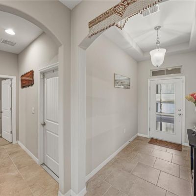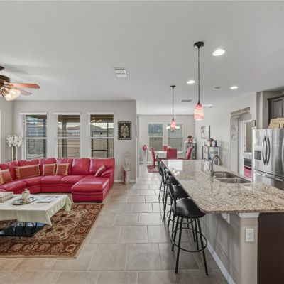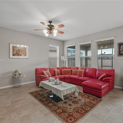 Kitchen/Family Room Combo, Tray Ceiling(s), Window Treatments, Ceiling Fan(s), High Ceilings, Open Floorplan, Solid Surface Counters, Split Bedroom