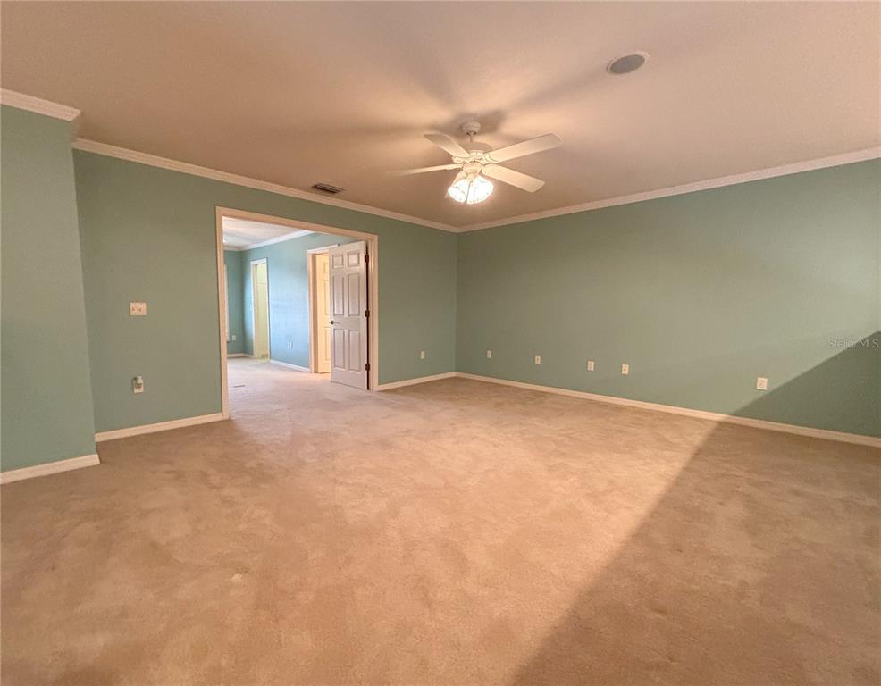 Ceiling Fan(s), Crown Molding, Eating Space In Kitchen, High Ceilings, Open Floorplan, Primary Bedroom Main Floor, Split Bedroom, Thermostat, Walk-In Closet(s)