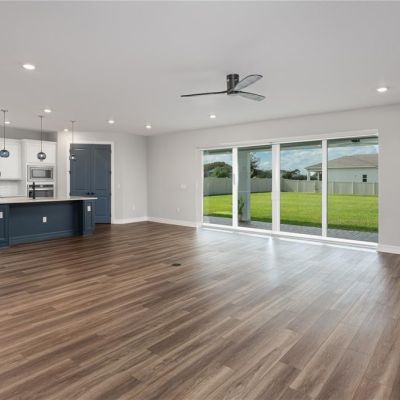 Ceiling Fan(s), Eating Space In Kitchen, High Ceilings, Open Floorplan, Primary Bedroom Main Floor, Solid Surface Counters