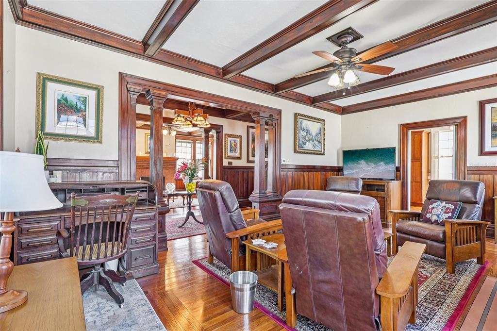 Ceiling Fan(s), Chair Rail, Crown Molding, Eating Space In Kitchen, High Ceilings, Solid Surface Counters, Stone Counters, Walk-In Closet(s)