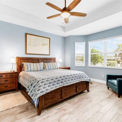 Ceiling Fan(s), Eating Space In Kitchen, High Ceilings, Kitchen/Family Room Combo, Open Floorplan, Primary Bedroom Main Floor, Solid Surface Counters, Split Bedroom, Stone Counters, Thermostat, Walk-In Closet(s)