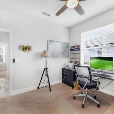 Ceiling Fan(s), Eating Space In Kitchen, High Ceilings, Kitchen/Family Room Combo, Open Floorplan, Primary Bedroom Main Floor, Solid Surface Counters, Split Bedroom, Stone Counters, Thermostat, Walk-In Closet(s)