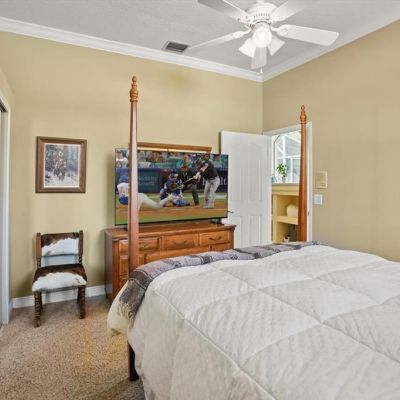 Ceiling Fan(s), Crown Molding, Eating Space In Kitchen, High Ceilings, Kitchen/Family Room Combo, Living Room/Dining Room Combo, Solid Wood Cabinets, Split Bedroom, Stone Counters, Window Treatments