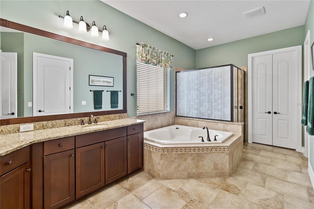 Ceiling Fan(s), Crown Molding, Eating Space In Kitchen, High Ceilings, Kitchen/Family Room Combo, Open Floorplan, Primary Bedroom Main Floor, Stone Counters, Tray Ceiling(s), Walk-In Closet(s), Window Treatments