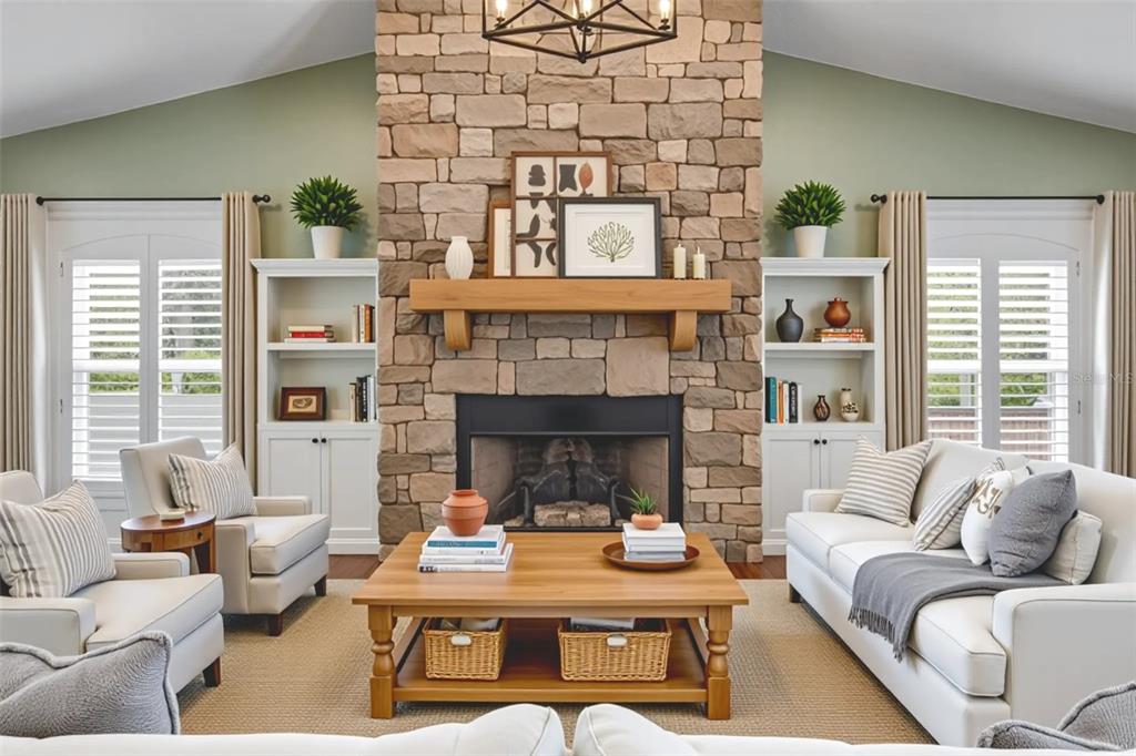 Cathedral Ceiling(s), Ceiling Fan(s), Crown Molding, Living Room/Dining Room Combo, Open Floorplan, Primary Bedroom Main Floor, Thermostat, Walk-In Closet(s), Window Treatments