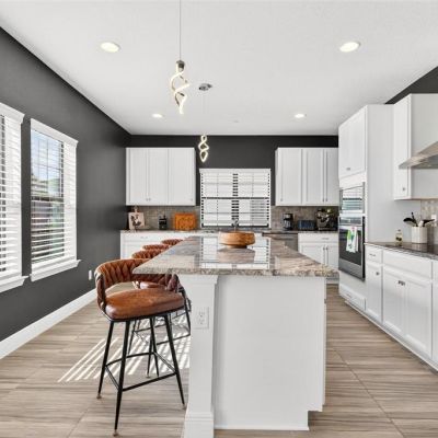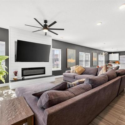 Ceiling Fan(s), Eating Space In Kitchen, High Ceilings, Kitchen/Family Room Combo, Living Room/Dining Room Combo, Open Floorplan, PrimaryBedroom Upstairs, Stone Counters, Thermostat, Walk-In Closet(s)