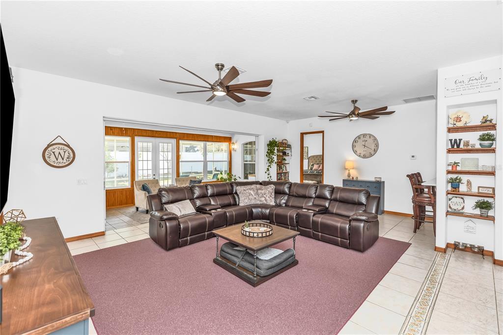 Ceiling Fan(s), High Ceilings, Kitchen/Family Room Combo, Living Room/Dining Room Combo, Open Floorplan, Primary Bedroom Main Floor, Solid Surface Counters