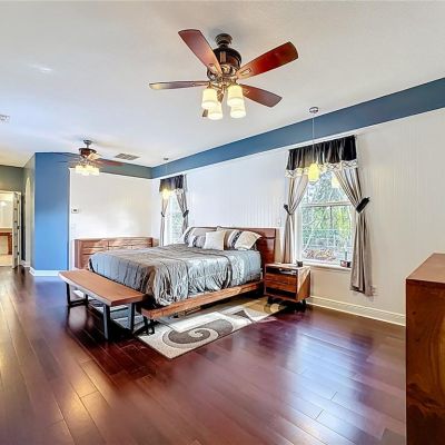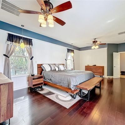 Ceiling Fan(s), Kitchen/Family Room Combo, Primary Bedroom Main Floor, Solid Surface Counters, Solid Wood Cabinets, Split Bedroom, Stone Counters, Walk-In Closet(s)
