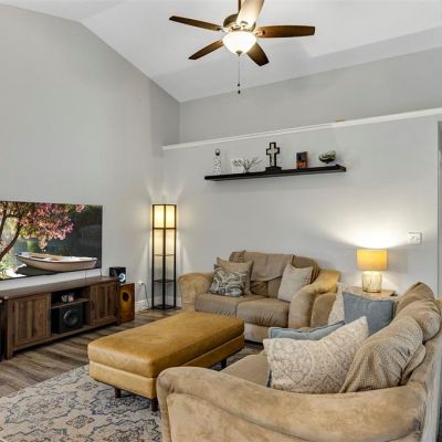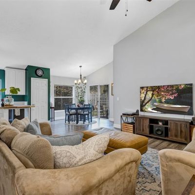 Cathedral Ceiling(s), Ceiling Fan(s), Eating Space In Kitchen, High Ceilings, Kitchen/Family Room Combo, Living Room/Dining Room Combo, Open Floorplan, Primary Bedroom Main Floor, Solid Surface Counters, Split Bedroom, Stone Counters, Thermostat, Vaulted Ceiling(s), Walk-In Closet(s), Window Treatments