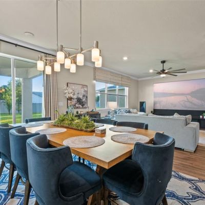 Ceiling Fan(s), Crown Molding, Living Room/Dining Room Combo, PrimaryBedroom Upstairs, Thermostat, Walk-In Closet(s), Window Treatments