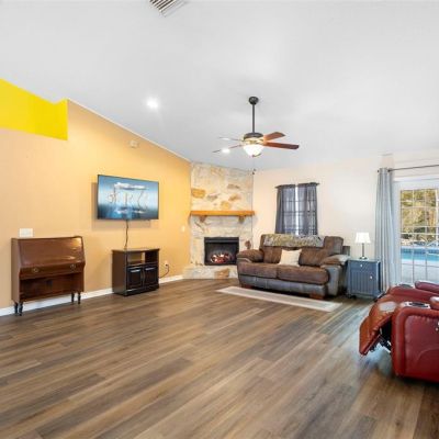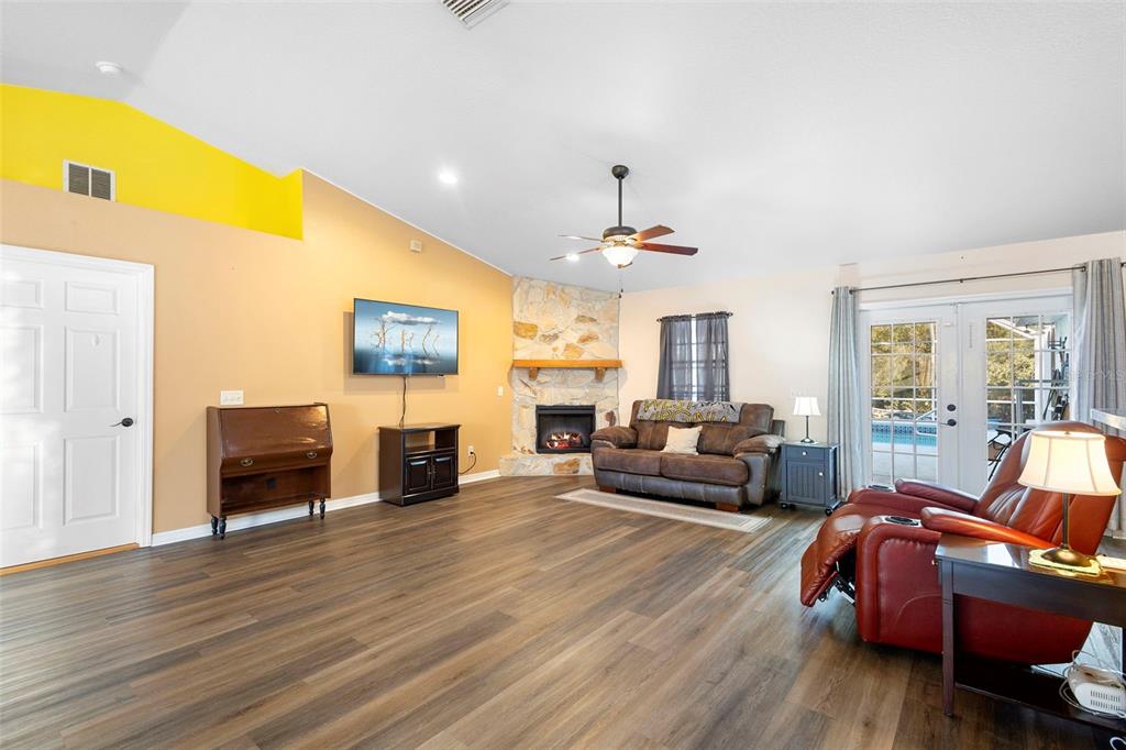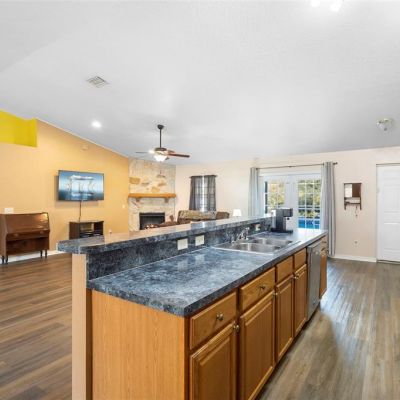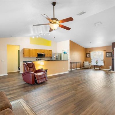 Ceiling Fan(s), Eating Space In Kitchen, High Ceilings, Kitchen/Family Room Combo, Living Room/Dining Room Combo, Open Floorplan, Split Bedroom, Walk-In Closet(s), Window Treatments