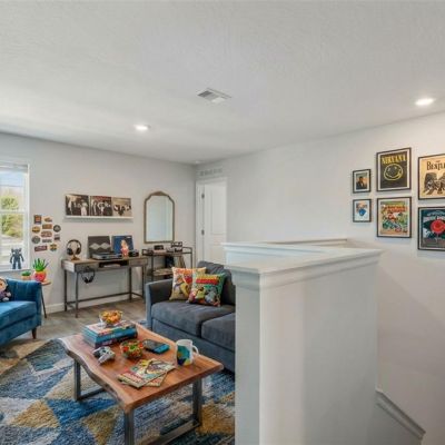 Ceiling Fan(s), Eating Space In Kitchen, High Ceilings, Open Floorplan, PrimaryBedroom Upstairs, Solid Surface Counters, Solid Wood Cabinets, Split Bedroom, Thermostat, Walk-In Closet(s)