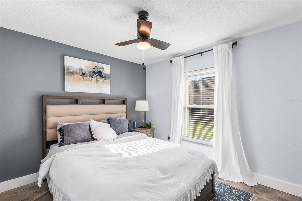 Built-in Features, Ceiling Fan(s), Eating Space In Kitchen, Primary Bedroom Main Floor, Solid Wood Cabinets, Stone Counters, Thermostat, Window Treatments