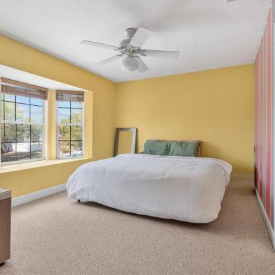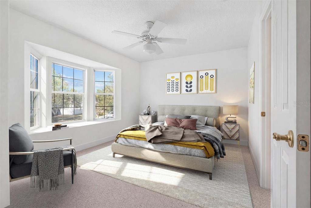Ceiling Fan(s), Crown Molding, High Ceilings, Open Floorplan, Solid Surface Counters, Solid Wood Cabinets, Thermostat, Walk-In Closet(s)