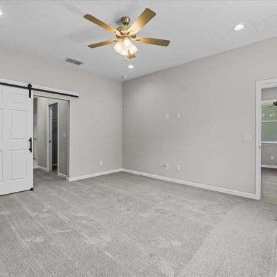 Ceiling Fan(s), Open Floorplan, Solid Wood Cabinets, Split Bedroom, Stone Counters, Thermostat, Walk-In Closet(s)