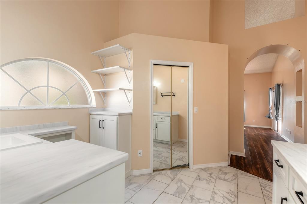 Cathedral Ceiling(s), Ceiling Fan(s), Eating Space In Kitchen, High Ceilings, Open Floorplan, Primary Bedroom Main Floor, Split Bedroom, Stone Counters, Thermostat, Walk-In Closet(s), Wet Bar
