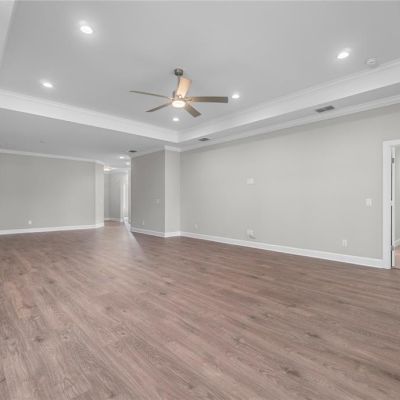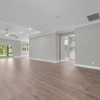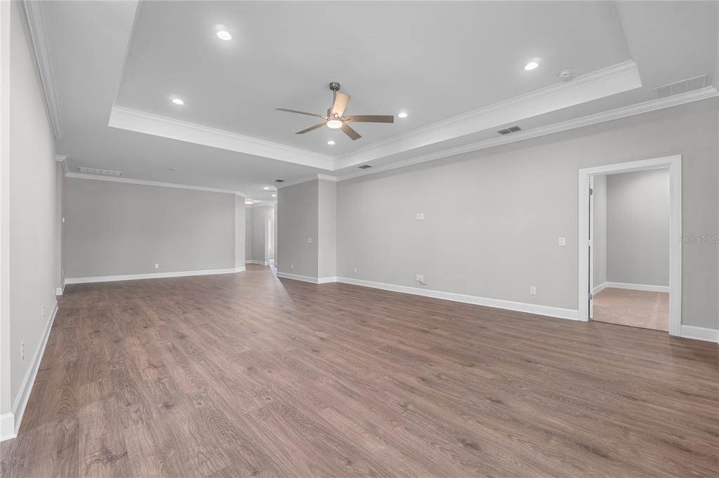 Ceiling Fan(s), Crown Molding, Eating Space In Kitchen, Open Floorplan, Solid Wood Cabinets, Split Bedroom, Stone Counters, Thermostat