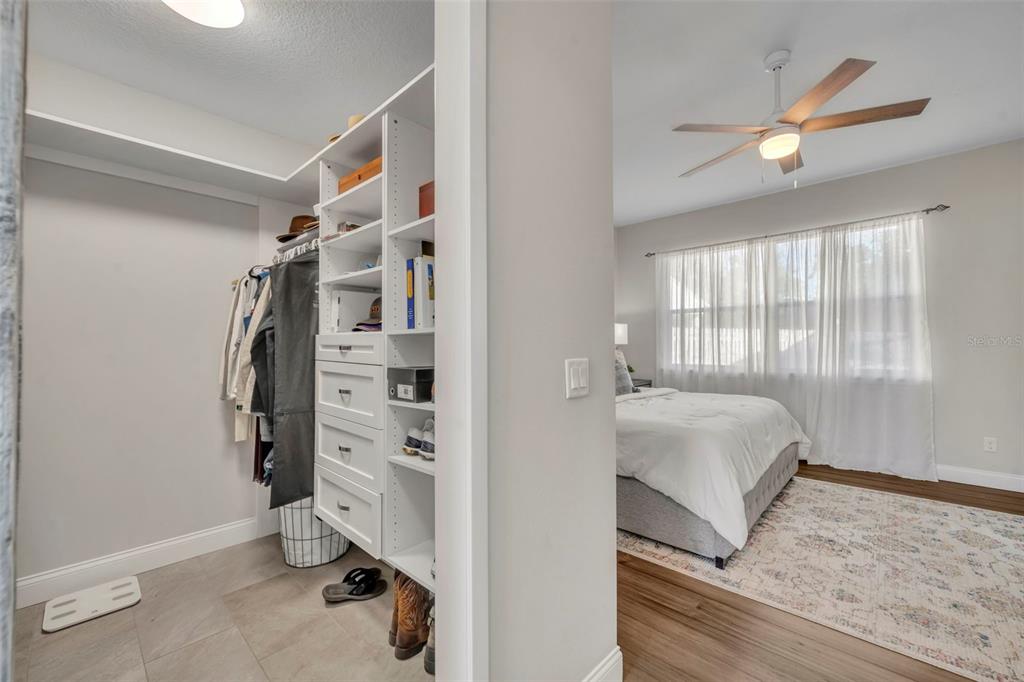 Built-in Features, Ceiling Fan(s), Eating Space In Kitchen, High Ceilings, Kitchen/Family Room Combo, Open Floorplan, Primary Bedroom Main Floor, Solid Surface Counters, Split Bedroom, Stone Counters, Thermostat, Walk-In Closet(s), Window Treatments